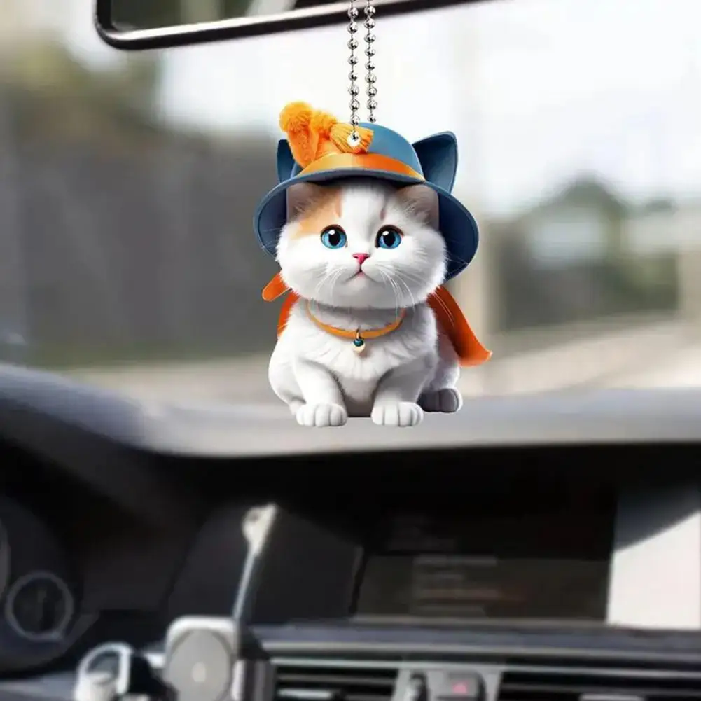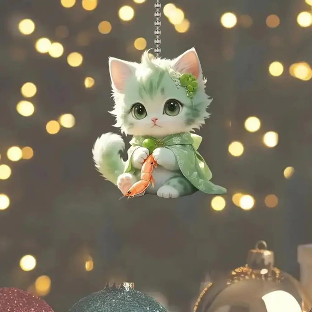 Cat Hanging Ornament Car Rearview Mirror Pendant with Lanyard Easy to Hang Animal-Shaped Christmas Tree Pendant